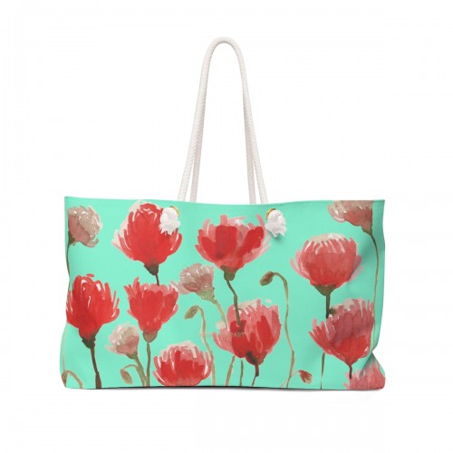 Blue Red Poppy Tote Bag, Flowers Floral Print Oversized Designer 24″x13″ Large Weekender Bag 24×13