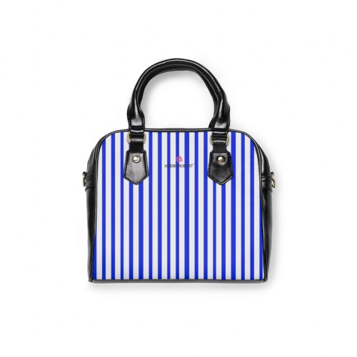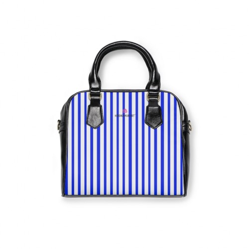Blue Striped Shoulder Handbag, Colorful Best Designer Ladies’ 9.45″ x 8.27″ Shoulder Handbag Black