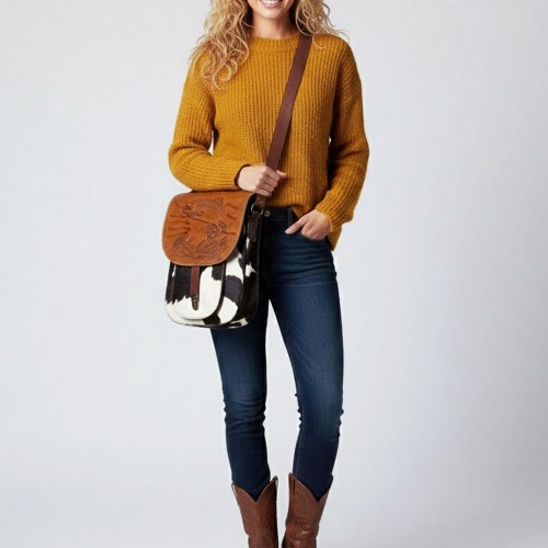 American Darling Backpack Hand Tooled Hair on Genuine Leather Western Women Bag |Weekend Travel Bags