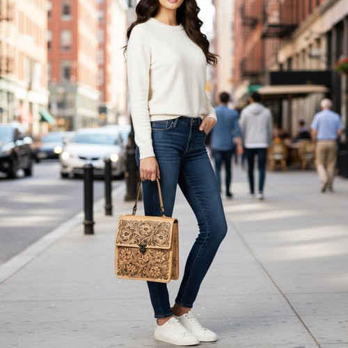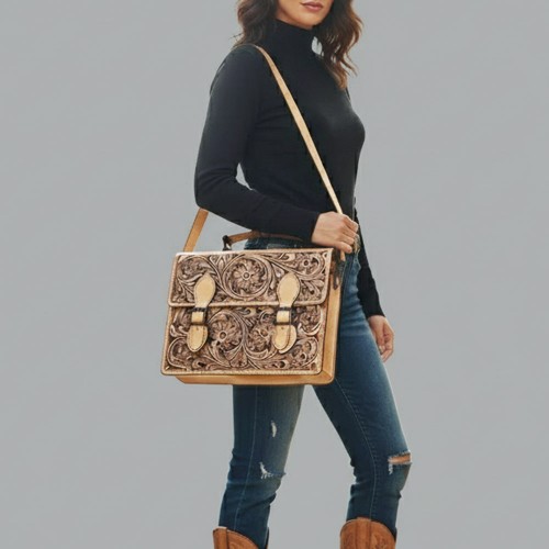 American Darling Briefcase Hand Tooled Genuine Leather women bag western handbag purse