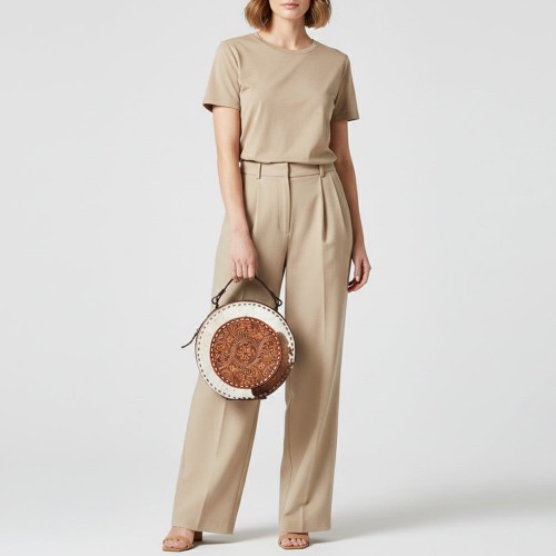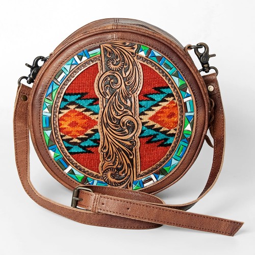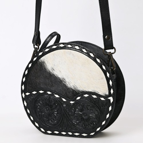 American Darling Canteen Hand Tooled Hair-On Genuine Leather Women Bag Western Handbag Purse