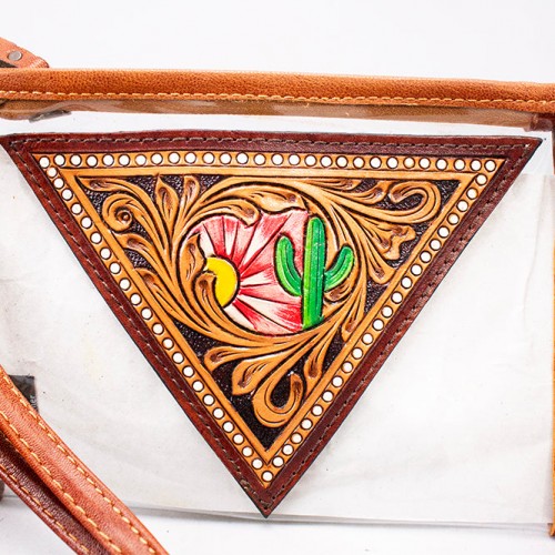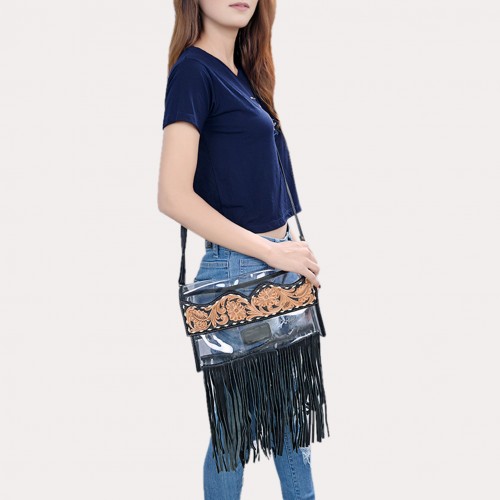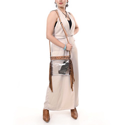 American Darling Clear Western Crossbody with Fringe – Hand-Tooled Genuine Leather Bag