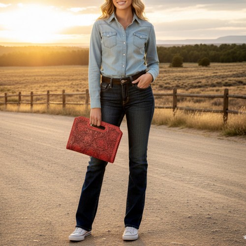 American Darling Clutch Hand Tooled Embossed Genuine Leather Women Bag Western Handbag Purse