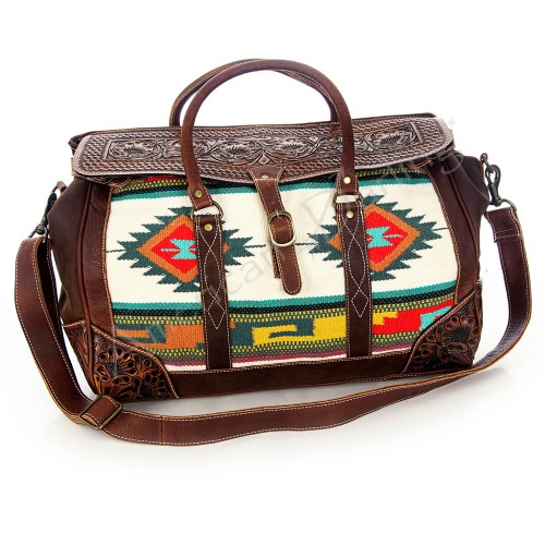 American Darling Duffel Hand Tooled Saddle Blanket Genuine Leather Women Bag Western Handbag Purse