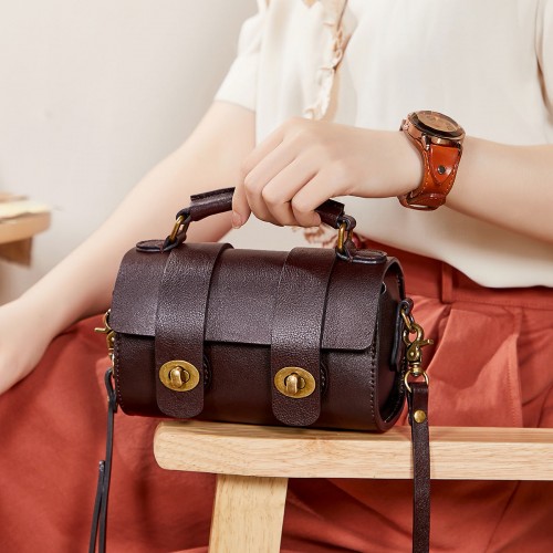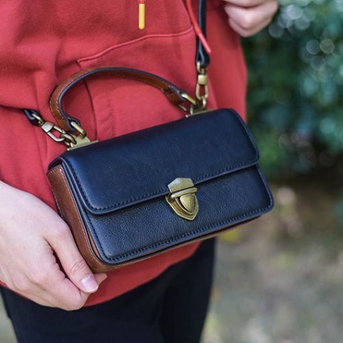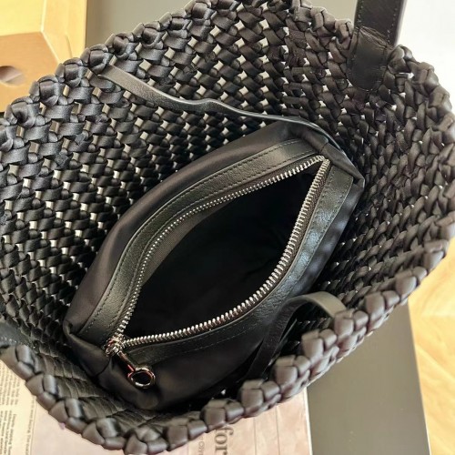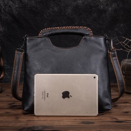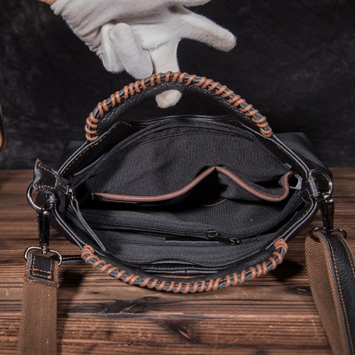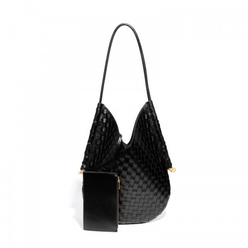 Women’s Retro Cowhide Woven Large Capacity Portable Commuter Shoulder Bags Black 28*22*13 Small Size