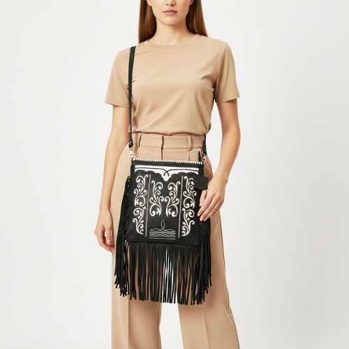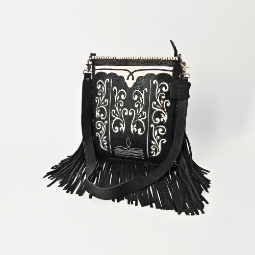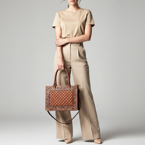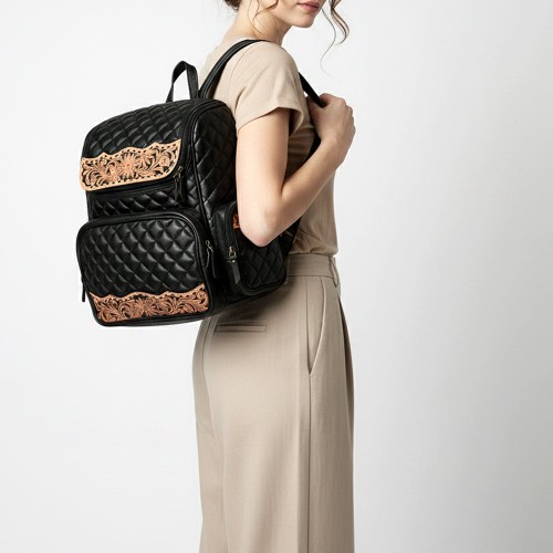 American Darling Genuine Leather Hand-Tooled Floral Quilted Bucket Bag with Tassels and YKK Zipper