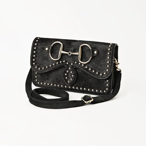 American Darling Hair-On Leather Crossbody Handbag for Women, Western Studded Flap Shoulder Style
