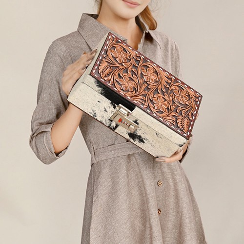 American Darling Jewelry Case Hand Tooled Hair-On Genuine Leather Women Bag Western Handbag Purse