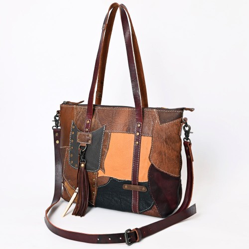 American Darling Leather Tote Bag – Colorful Leather Stripes, Western Style Handbag, Spacious Design