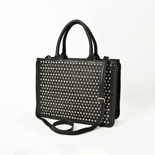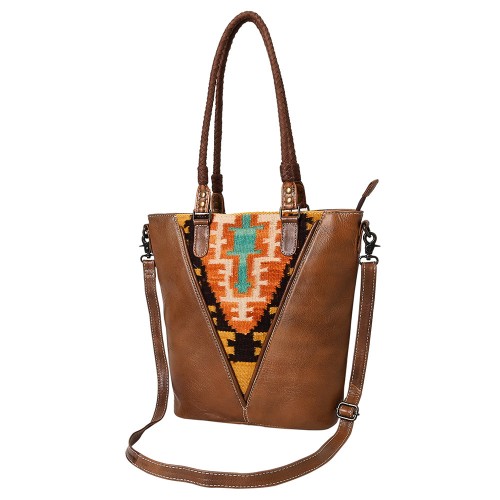 American Darling Leather Tote – Hand Woven Saddle Blanket Accents, Premium Western Leather Handbag
