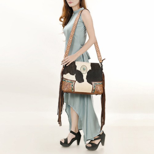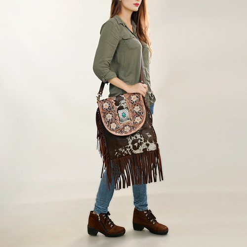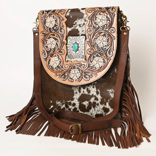 American Darling Messenger Hand Tooled Hair-On Genuine Leather Women Bag Western Handbag Purse