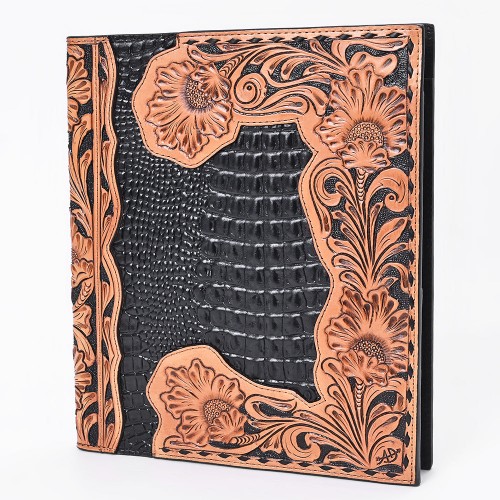 American Darling Portfolio Bag Hand Tooled Floral Carved Crocodile Embossed Genuine Western Leather