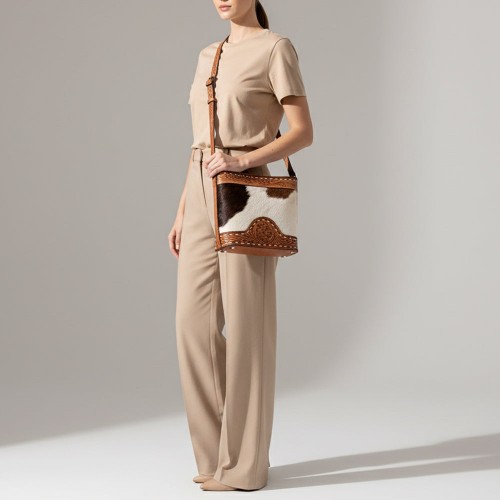 American Darling Tote Hand Tooled Hair-On Genuine Leather women bag western handbag purse