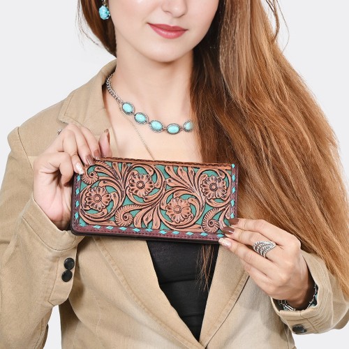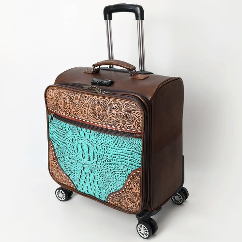 American Darling Travel Case Hand Tooled Saddle Blanket Genuine Leather Women Trolley bag