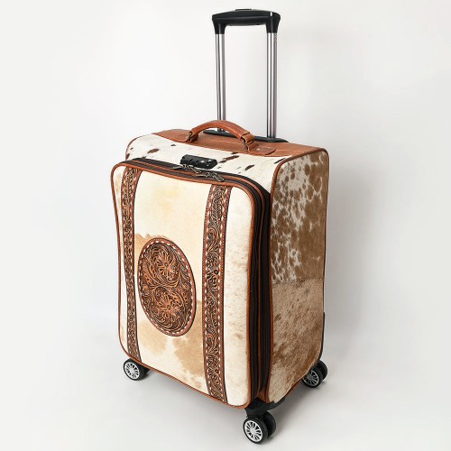 American Darling Travel Case Beautifully Hand Tooled Hair-On Genuine Leather Women Trolley bag
