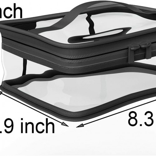 Black Transparent Cosmetic Bag Waterproof Handbag Portable Travel Work Make Up Kit Double Zipper Storage Bag, 2 PCS