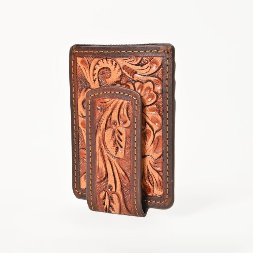 BAR H EQUINE American Western Bifold Men Genuine Leather Wallet Brown