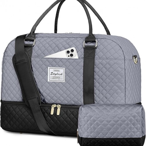 Weekender Bags for Women Travel Bag- Duffle Bags with Shoe Compartment Large Carry On Overnight Bag with Toiletry Bag & Wet Pocket for Women Labor Delivery Grey Black