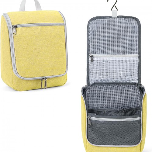 Travel Hanging Toiletry bag for Men & Women, Water-resistant Sturdy Nylon Toiletries Organizer for Cosmetics, Makeup Brushes, Shaving Tools, Bathroom Bag, Yellow