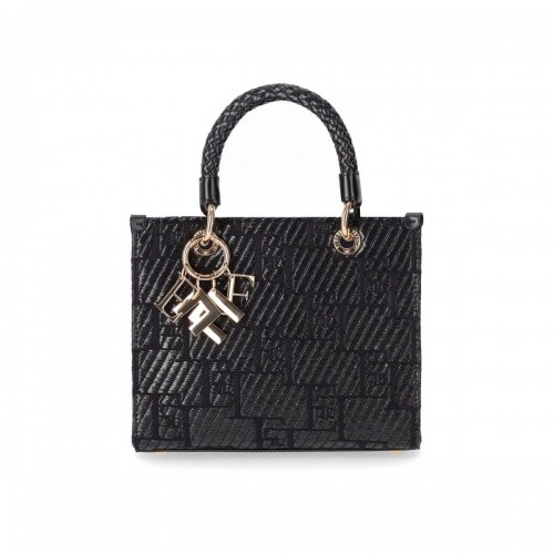 Elisabetta Franchi Black Monogram Mesh Shopping Bag one size