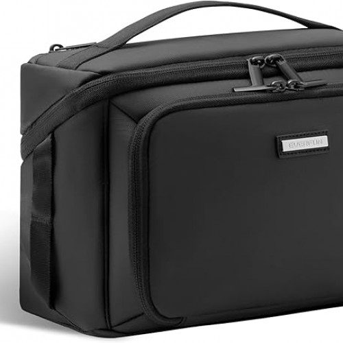 Everfun Compact Toiletry Bag for Men and Women Traveling, Wide Open Shaving Dopp Kit, Water Resistant Makeup Organizer Hygiene Bag with Wet Dry Compartment – Black, Medium