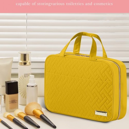 HOTOR Travel Toiletry Bag w/Hanging Hook – Spacious Toiletry Bag Essentials for Women & Men, Makeup Bag/Big Comparment, Waterproof for Travel Accessories, Medium, Yellow