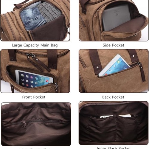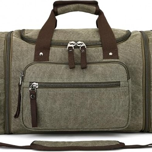 Large men’s travel luggage bag, carry overnight bag, weekend handbag, waterproof canvas travel bag(khaki)