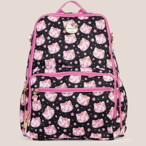 Hello Kitty® × JuJuBe Cherry Blossoms Bestie Small Messenger Handbag, Backpack — Black and Pink