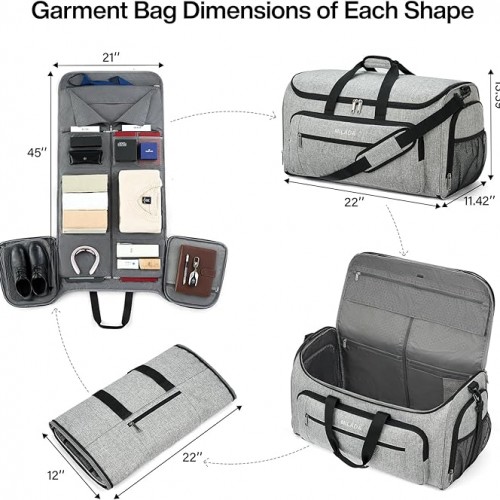 MILADA Convertible 2-in-1 Garment Duffel Weekender Bag Carry On Garment Bags for Travel Hanging Clothes Suit Bag Foldable Personal Item Business Overnight Bag with Shoe Compartment, Light Grey
