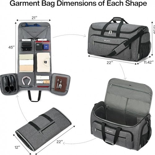 MILADA Convertible 2-in-1 Garment Duffel Weekender Bag Carry On Garment Bags for Travel Hanging Clothes Suit Bag Foldable Personal Item Business Overnight Bag with Shoe Compartment, Dark Grey