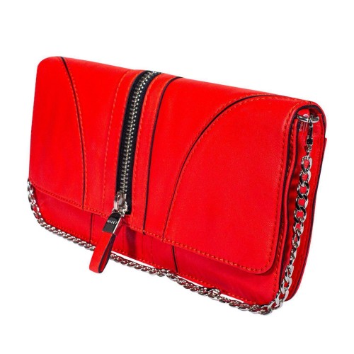 Milly – Red Leather Chain Shoulder Bag w/ Zipper Accent