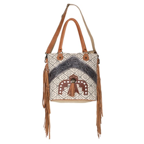 Ohlay Bags OHV176 Tote Hand Tooled Upcycled Canvas Genuine Leather Women Bag Western Handbag Purse