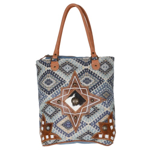 Ohlay Bags OHV172 Tote Upcycled Canvas Hair-On Genuine Leather Women Bag Western Handbag Purse