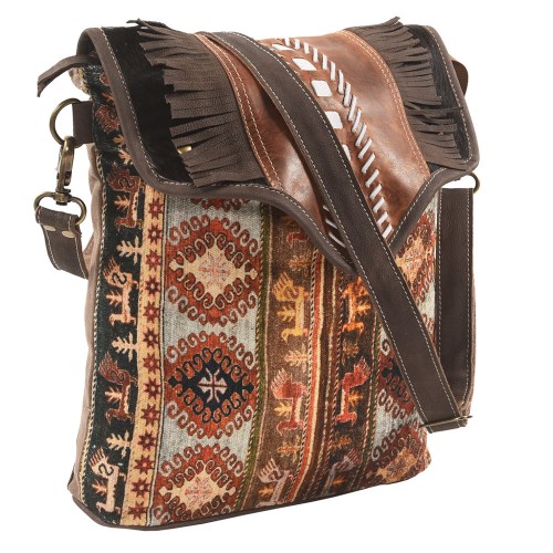 Ohlay Bags OHV233 Tote Upcycled Canvas Hair-On Genuine Leather Women Bag Western Handbag Purse