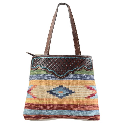 OHLAY KB284 TOTE Upcycled Wool Canvas Genuine Leather women bag western handbag purse