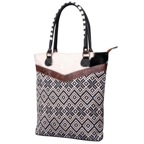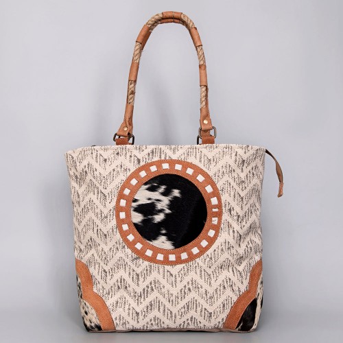 OHLAY KB518 TOTE Upcycled Canvas Hair-on Genuine Leather women bag western handbag purse
