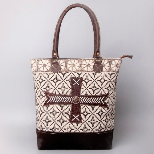 OHLAY KB542 TOTE Hand Tooled Upcycled Canvas Hair-on Genuine Leather women bag western handbag purse