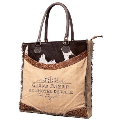 OHLAY KB519 TOTE Upcycled Canvas Hair-on Genuine Leather women bag western handbag purse