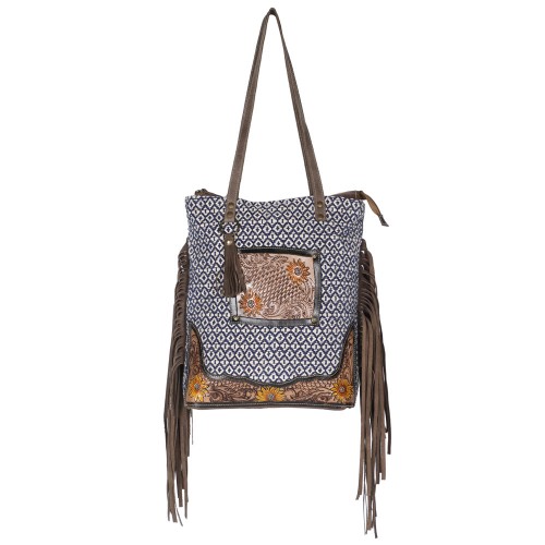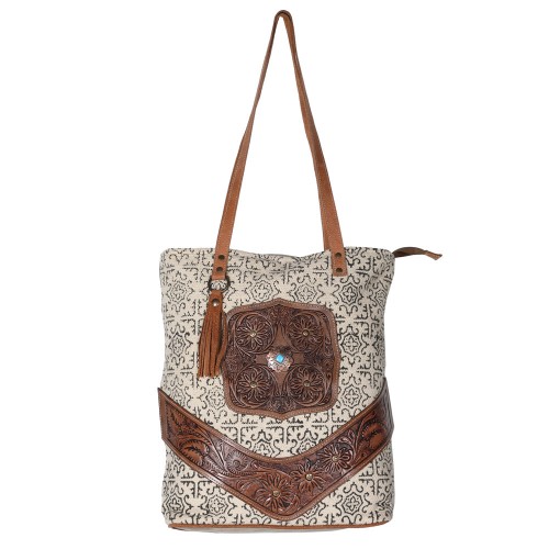 OHLAY KB594 TOTE Hand Tooled Upcycled Canvas Genuine Leather women bag western handbag purse