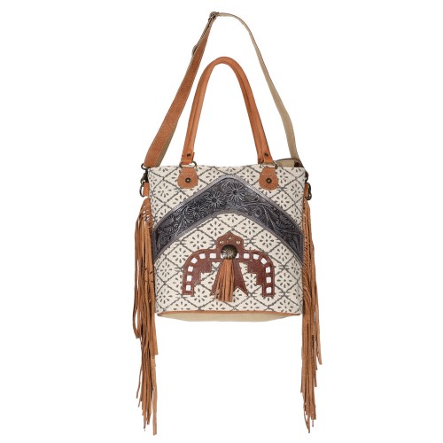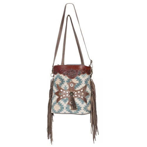 OHLAY KB595 TOTE Hand Tooled Upcycled Wool Canvas Genuine Leather women bag western handbag purse