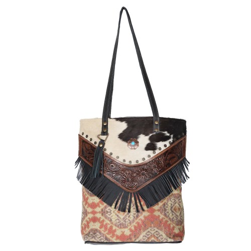 OHLAY KB572 TOTE Upcycled Canvas Hair-on Genuine Leather women bag western handbag purse