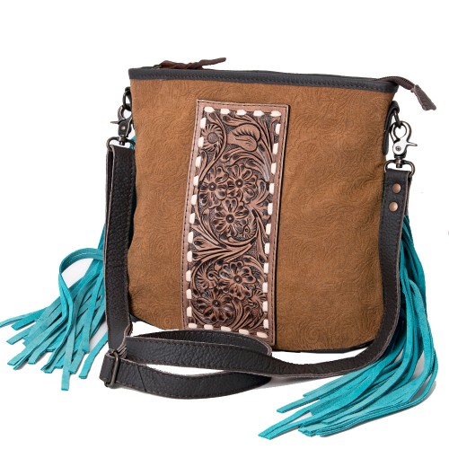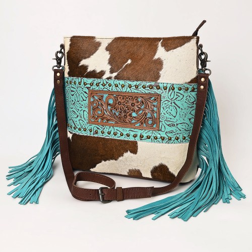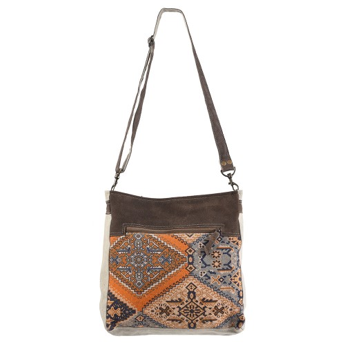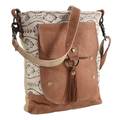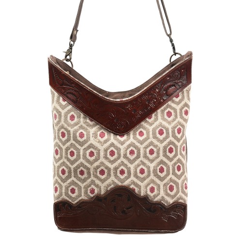 OHLAY Large Crossbody Upcycled Canvas Genuine Leather women bag western handbag purse