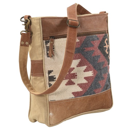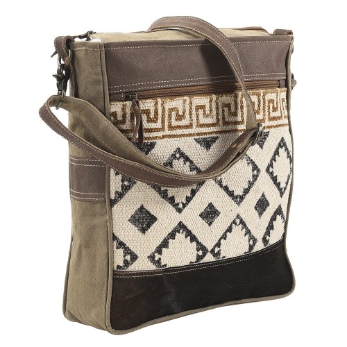 OHLAY Large Crossbody Upcycled Wool Canvas Genuine Leather women bag western handbag purse