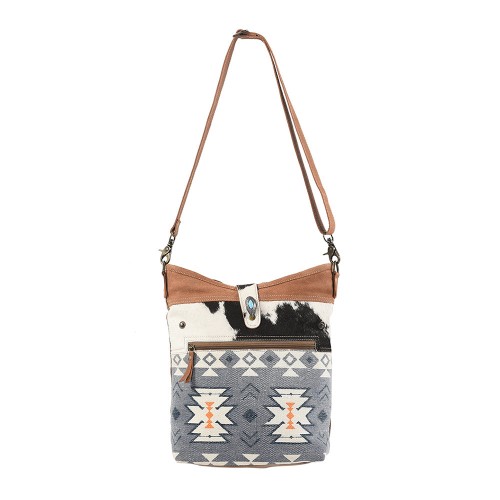 OHLAY Large Crossbody Upcycled Canvas Hair-on Genuine Leather women bag western handbag purse