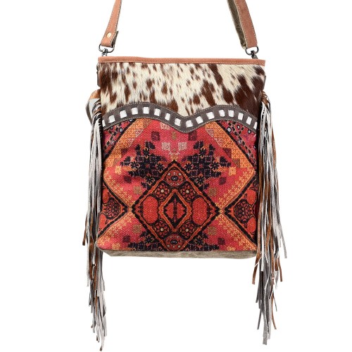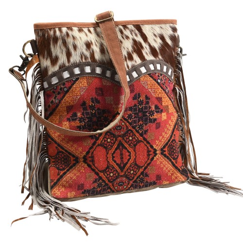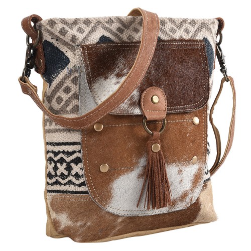 OHLAY Large Crossbody Upcycled Wool Canvas Hair-on Genuine Leather women bag western handbag purse