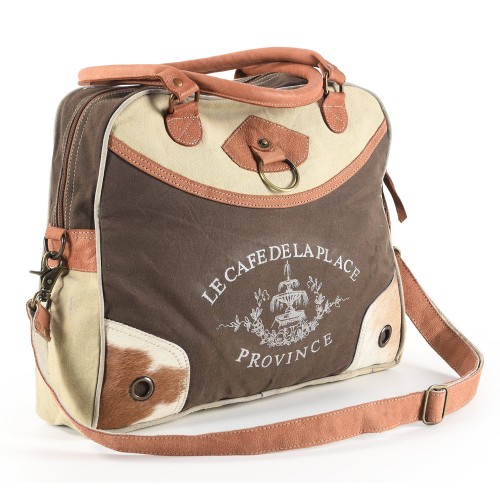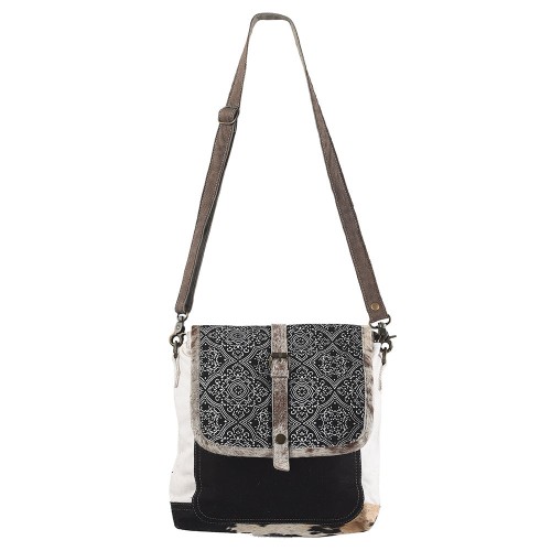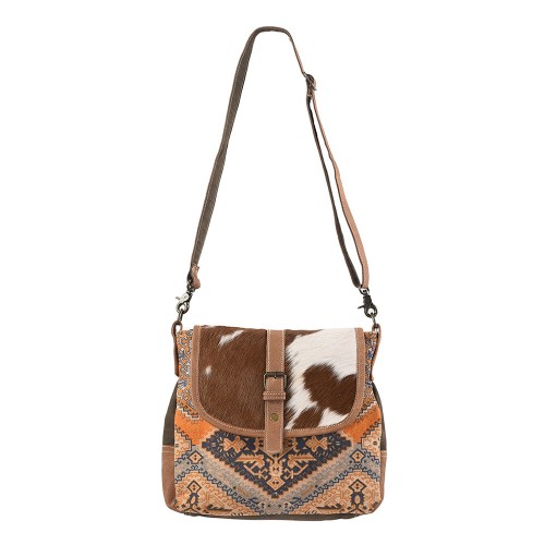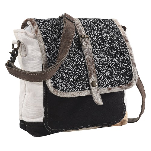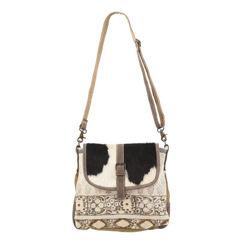 OHLAY Messenger Upcycled Canvas Hair-on Genuine Leather women bag western handbag purse
