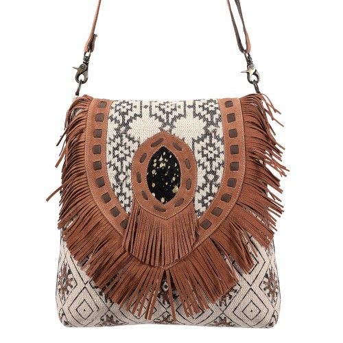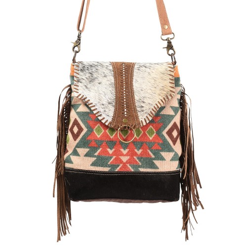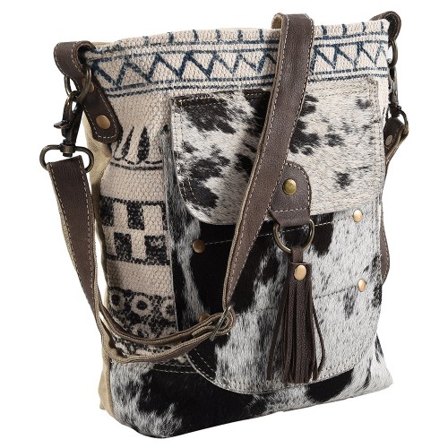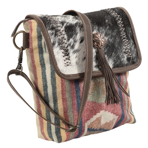 OHLAY Messenger Upcycled Wool Canvas Hair-on Genuine Leather women bag western handbag purse