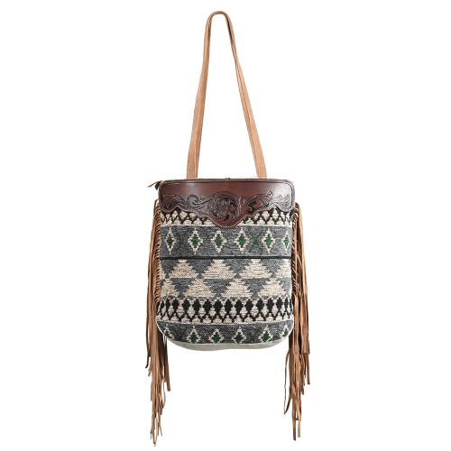 OHLAY OHV281 TOTE Hand Tooled Upcycled Wool Canvas Genuine Leather women bag western handbag purse