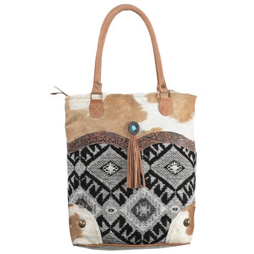 OHLAY OHV291 TOTE Upcycled Wool Canvas Hair-on Genuine Leather women bag western handbag purse