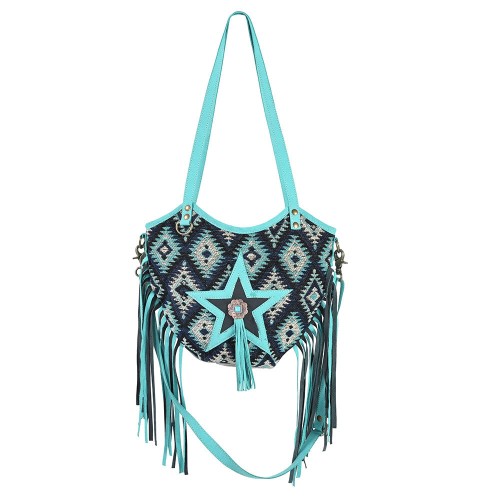 OHLAY OHV405 Cross Body Hand Tooled Upcycled Canvas Genuine Leather women bag western handbag purse